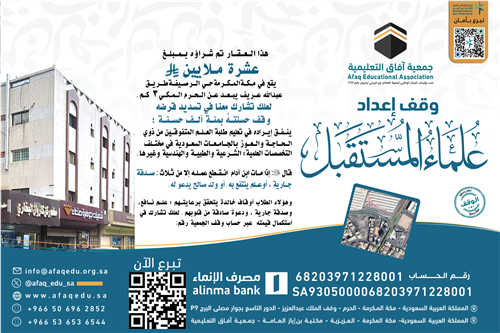 وقف خيري تعليمي في مكة المكرمة يصرف ريعه على تعليم ورعاية نخب من ذوي التميز والموهبة طلابًا وطالبات ليكونوا من علماء المستقبل في كافة التخصصات العلمية.